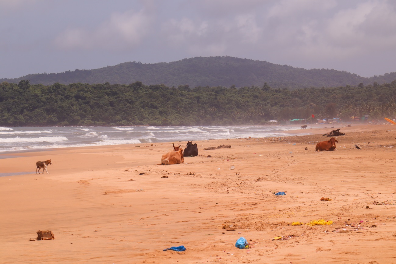 We wrześniu zamiast turystów na plaży leżały krowy, dużo krów, a między nimi biegały psy – ten obraz dobitnie wskazywał na to, że znajdujemy się w Indiach. Plaża w Agondzie jest długa i szeroka. Śmieci niestety też nie są niczym zaskakującym tutaj. Mamy nadzieję jednak, że w wysokim sezonie plaże są o wiele bardziej zadbane. Znajdują się tutaj też ciekawe formacje skalne i punkty widokowe. Warto pozwiedzać okoliczne plaże, które są równie piękne. Jeżeli nie masz obaw do jazdy skuterem, to bardzo polecamy tę formę zwiedzania okolicy.
