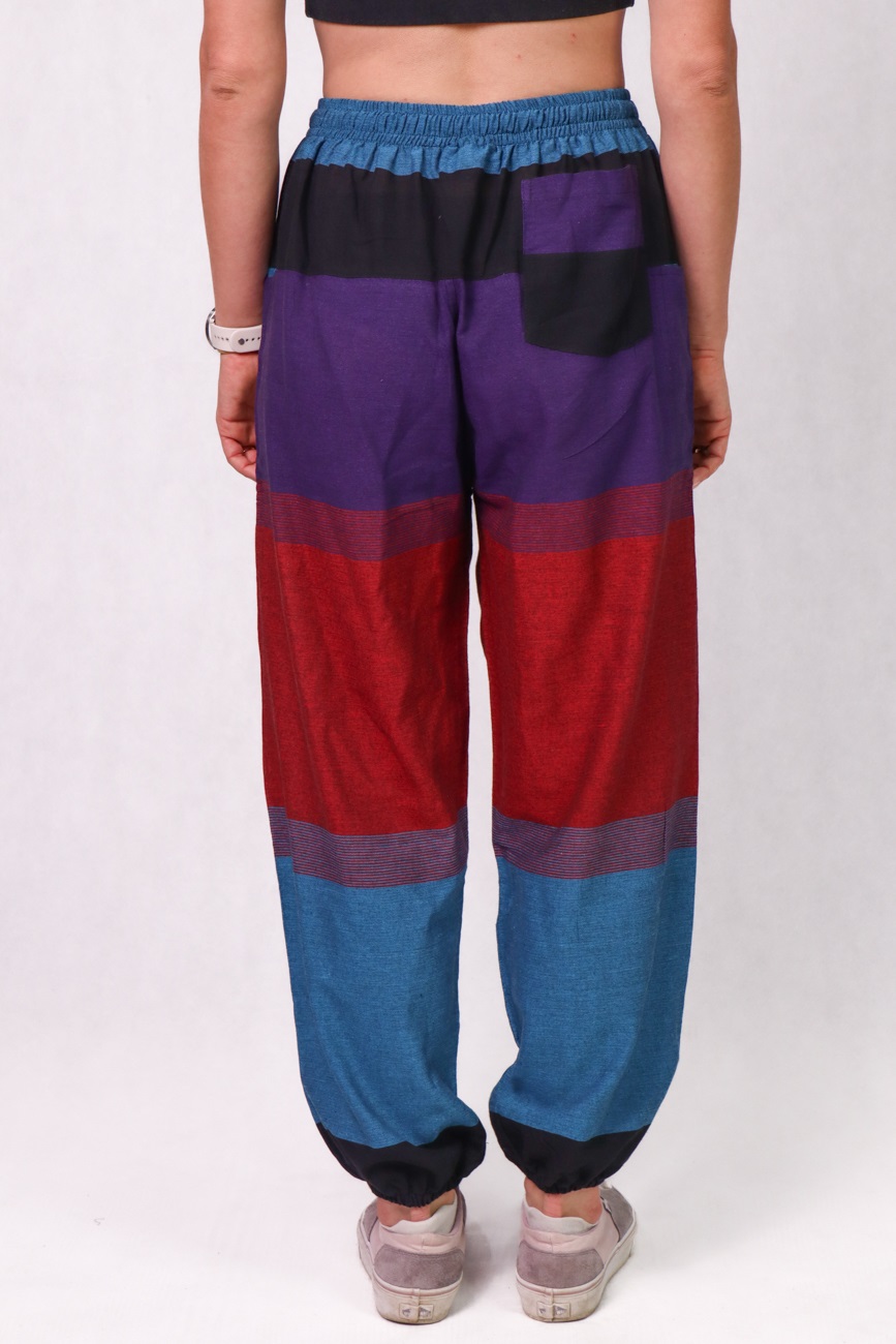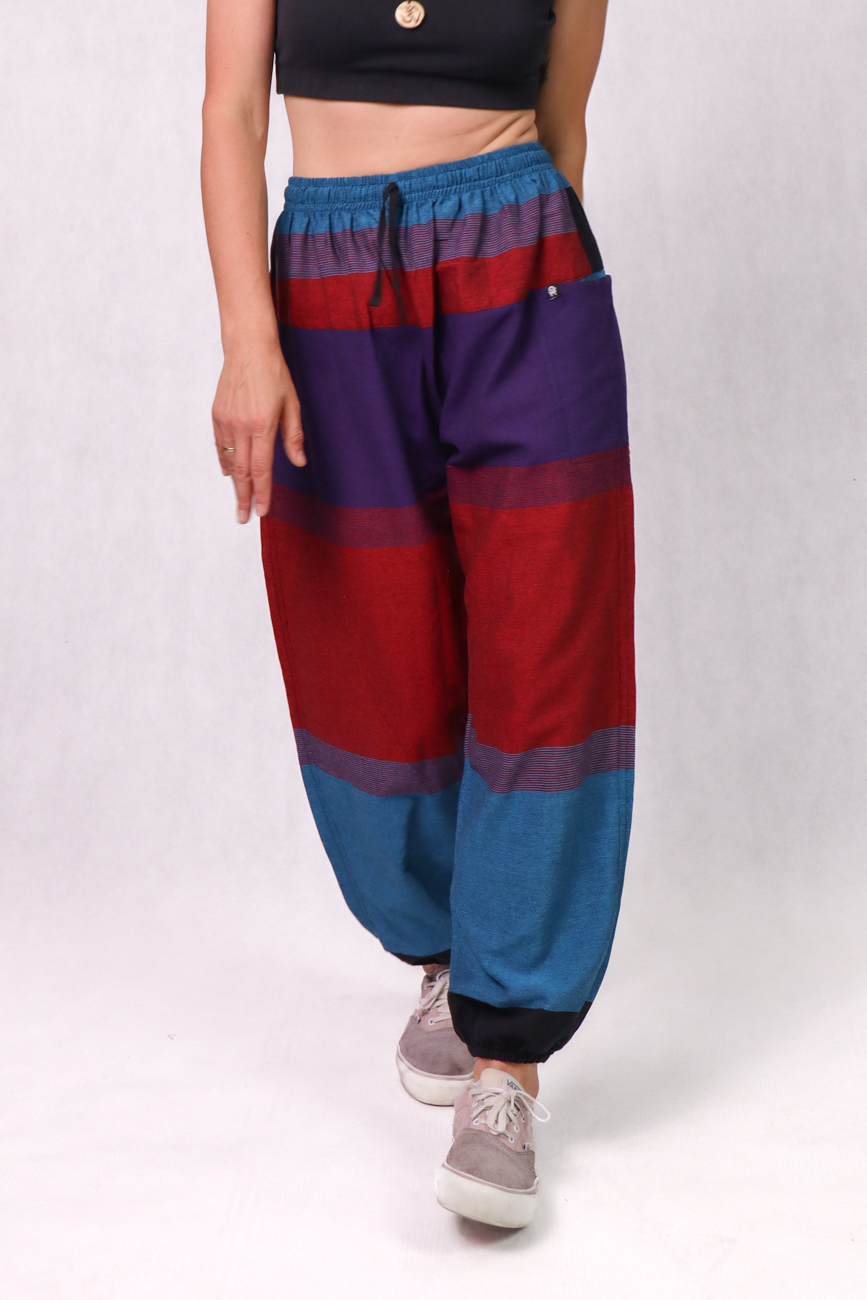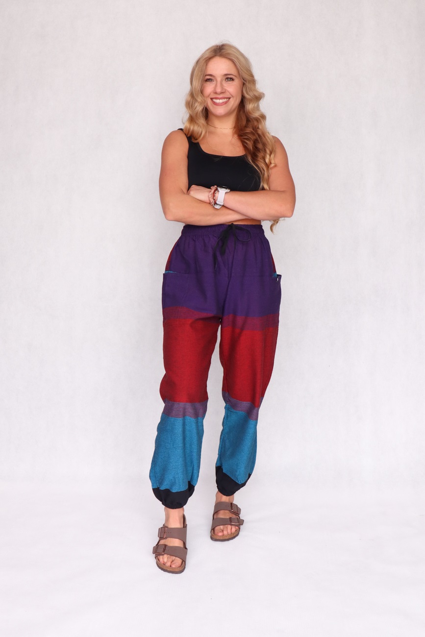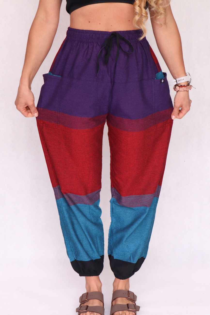 Te wyjątkowe alladynki zostały uszyte w lokalnej szwalni w sercu Katmandu. Wykonane są z lekkiej bawełny w pięknych kolorach, zapewniają doskonałą przewiewność. Są idealne na ciepłe dni. Luźny krój gwarantuje wygodę, a ich miękki materiał sprawia, że świetnie sprawdzają się nie tylko na zewnątrz, ale i w domu – w nich po prostu wygodnie się siedzi! Idealne do relaksu, ćwiczeń, jogi, spacerów czy codziennych stylizacji. Posiadają dwie boczne zewnętrzne kieszenie oraz jedną z tyłu.