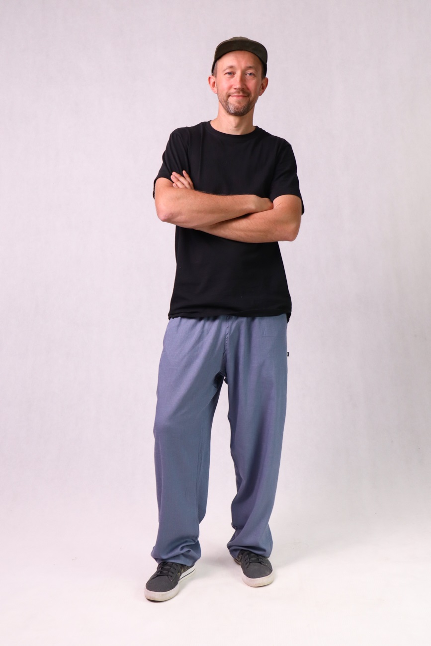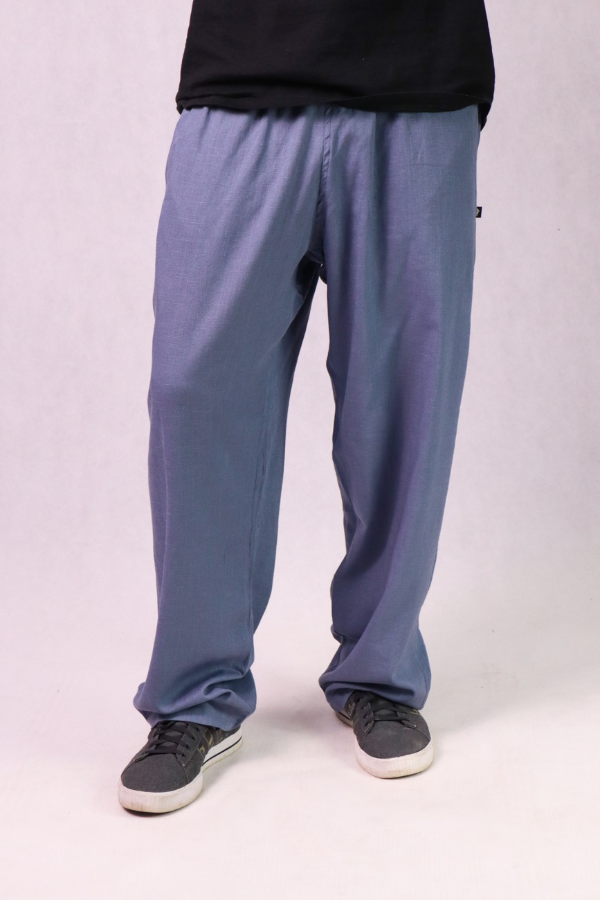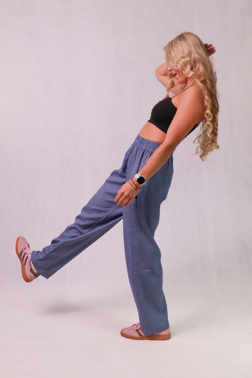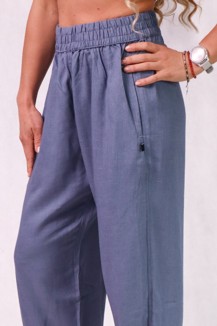 CZILERKI Luźne spodnie z lnu, wiskozy i bawełny, niebieskie