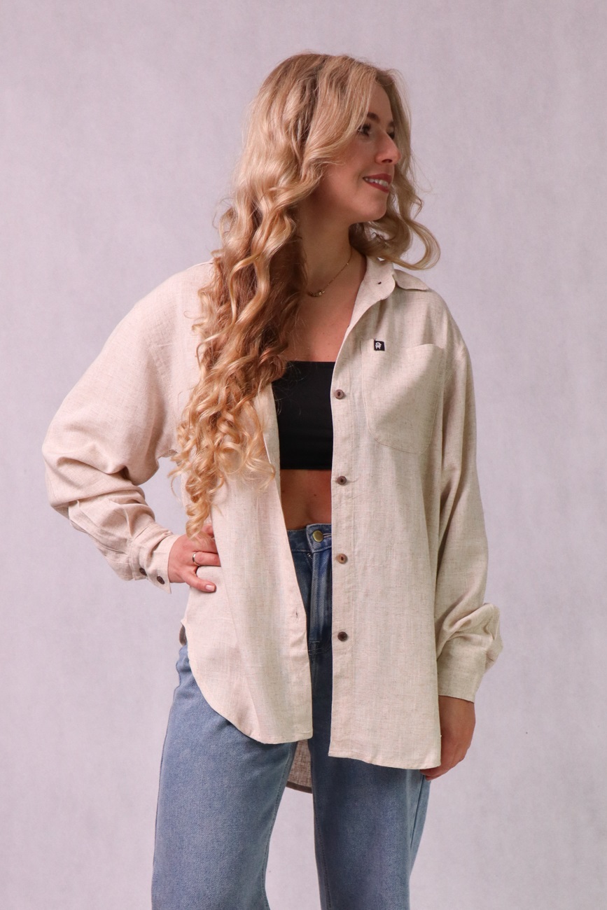 Koszula damska oversize z lnu, bawełny i wiskozy, kremowa