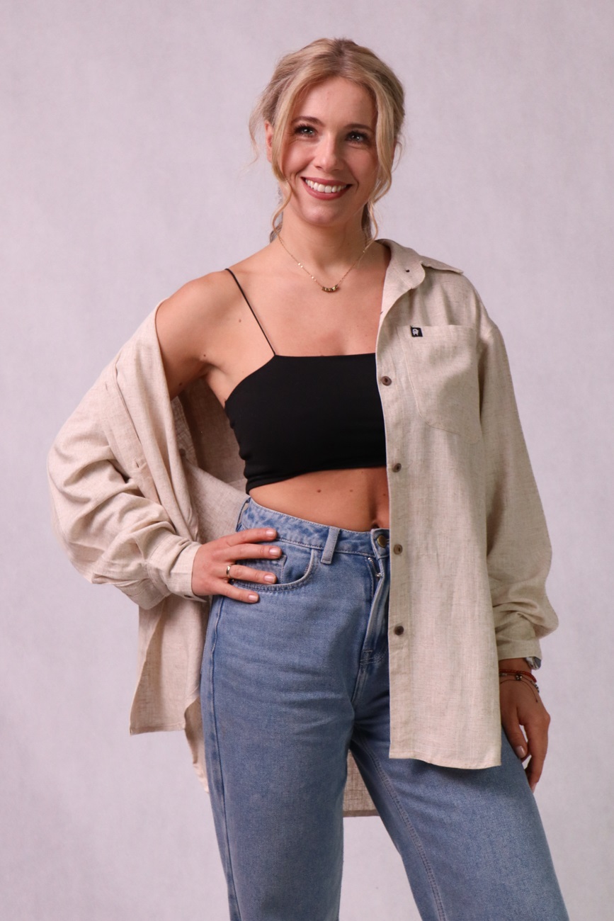 Początkowo materiał może wydawać się lekko szorstki – to zupełnie naturalne dla lnu. Ale z każdym praniem i noszeniem tkanina staje się coraz bardziej miękka, przyjemna i dopasowana do Ciebie.