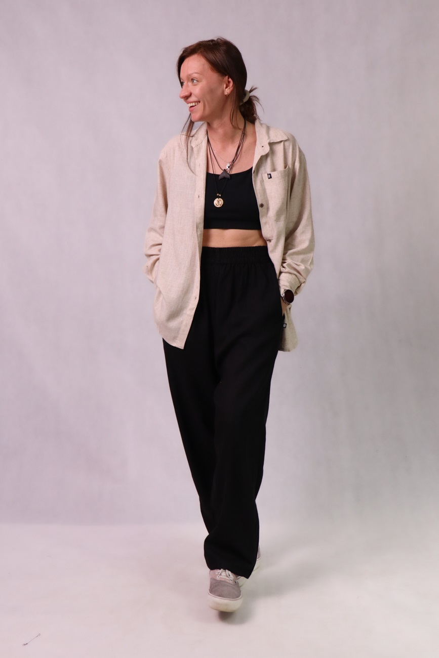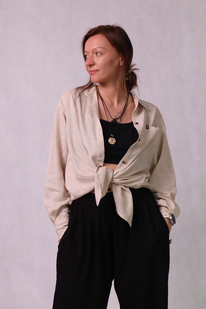 Uszyta w zaprzyjaźnionej, małej szwalni w Katmandu, z mieszanki naturalnych tkanin: lnu, bawełny i wiskozy. Dzięki temu jest lekka, przewiewna i przyjemna w dotyku – świetna na każdą porę roku.