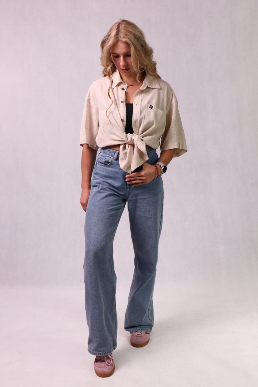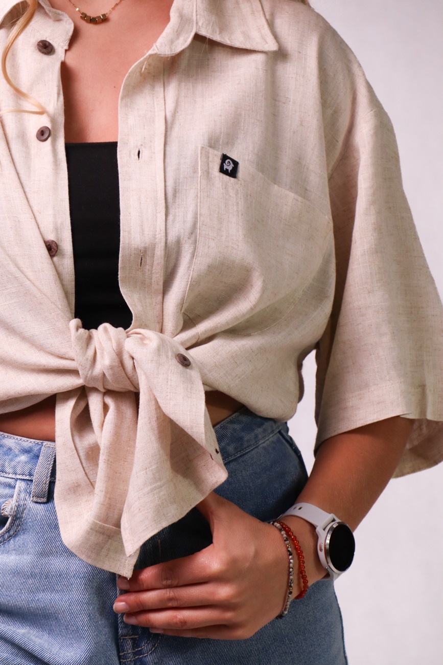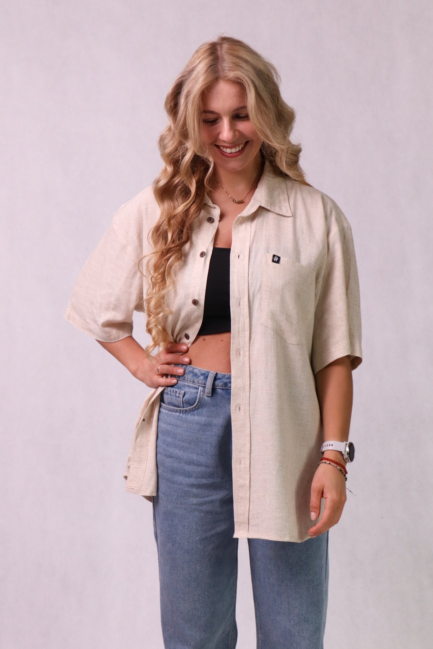 Luźny krój i krótki rękaw sprawiają, że sprawdzi się w każdej stylizacji – na spacer, na rower, na plażę czy na spotkanie w mieście. Możesz ją nosić rozpiętą, wiązaną w pasie lub jako lekką warstwę – niezależnie od płci i stylu.