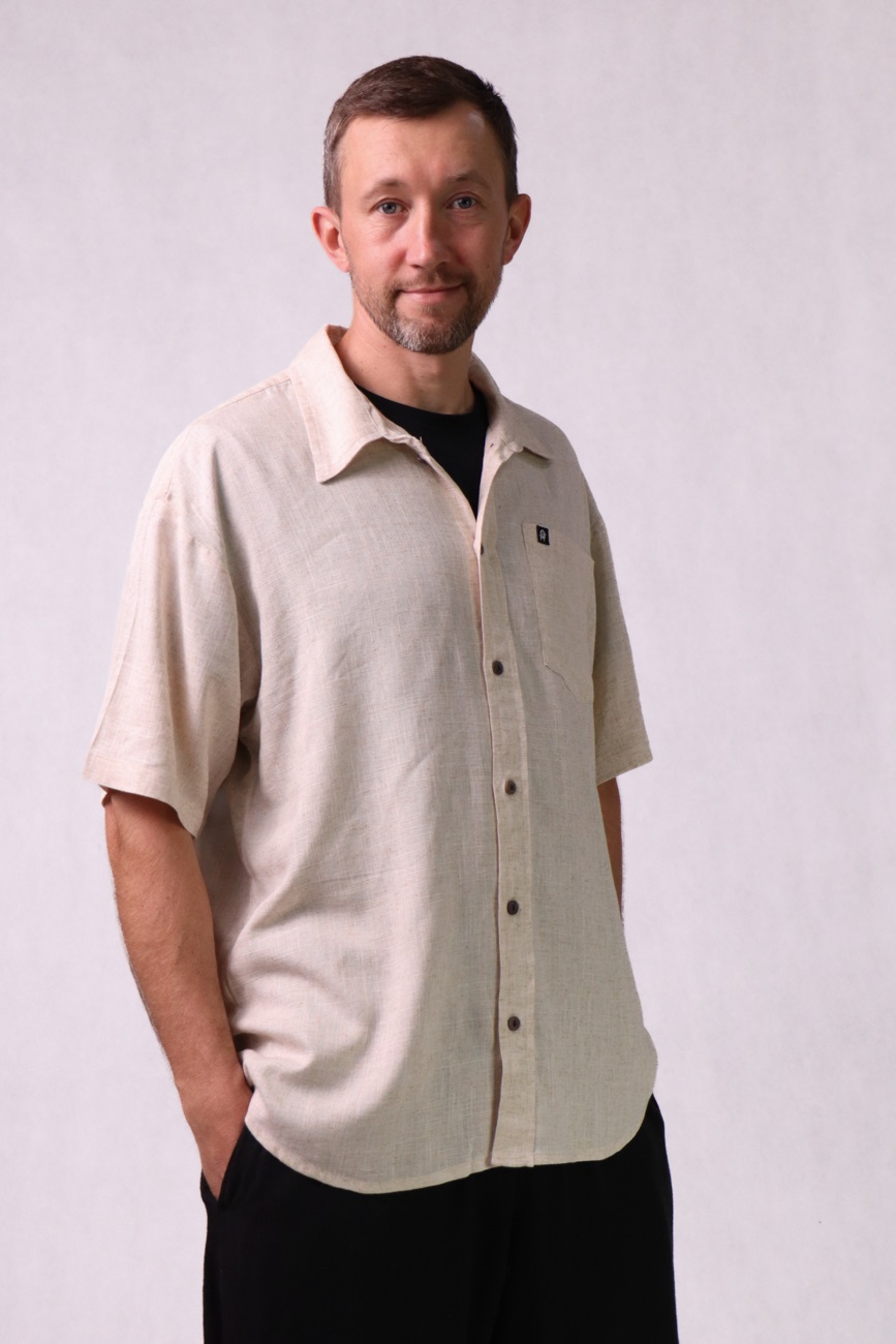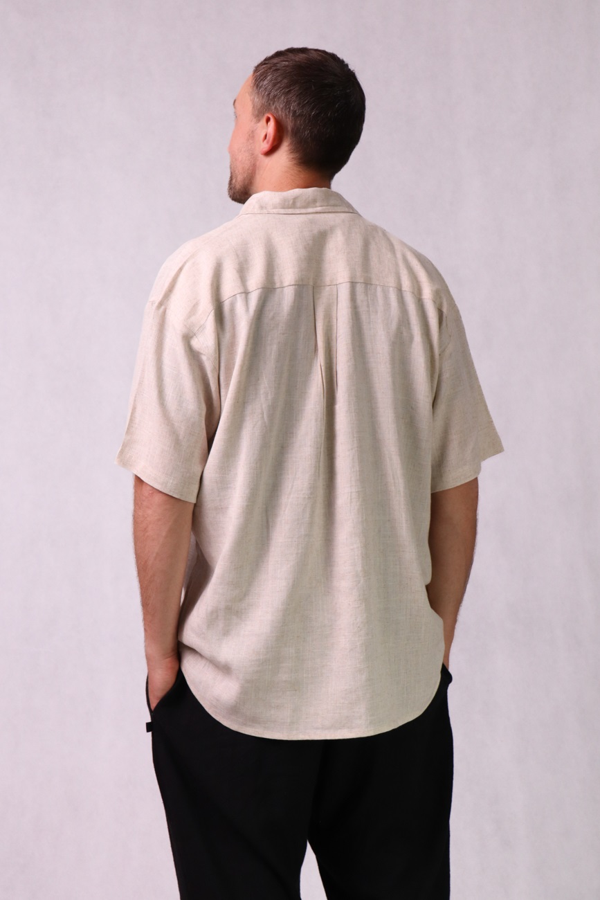 Koszula unisex, luźny krój, bawełna/len/wiskoza, kremowa