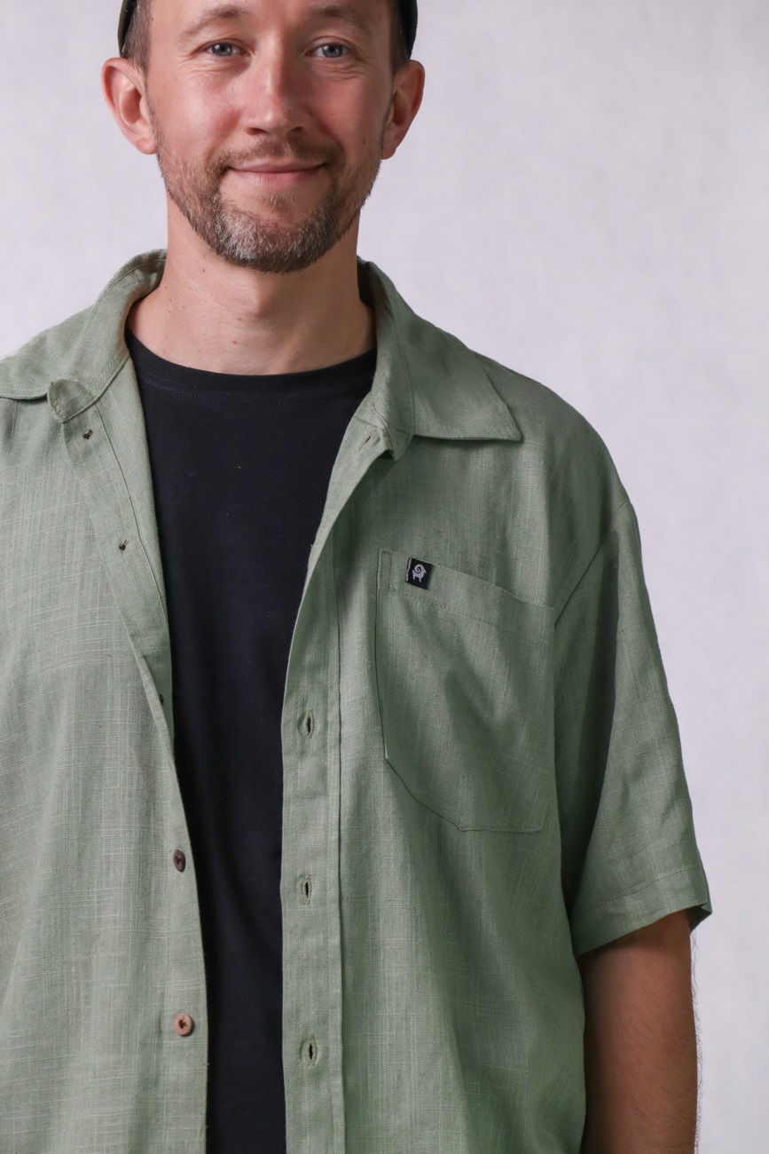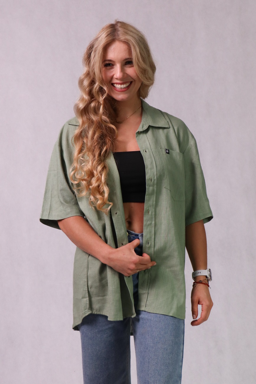 Koszula unisex, luźny krój, bawełna/len/wiskoza, zielona