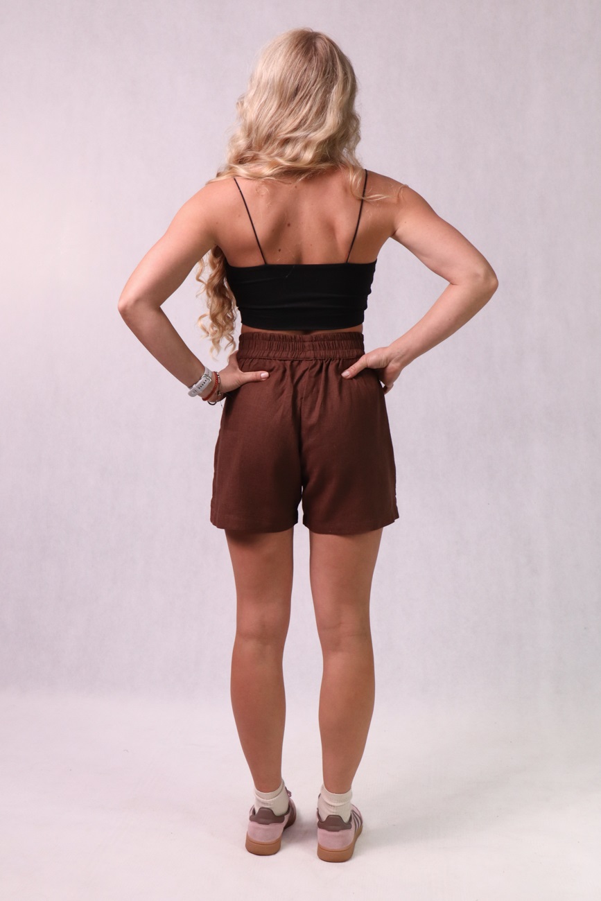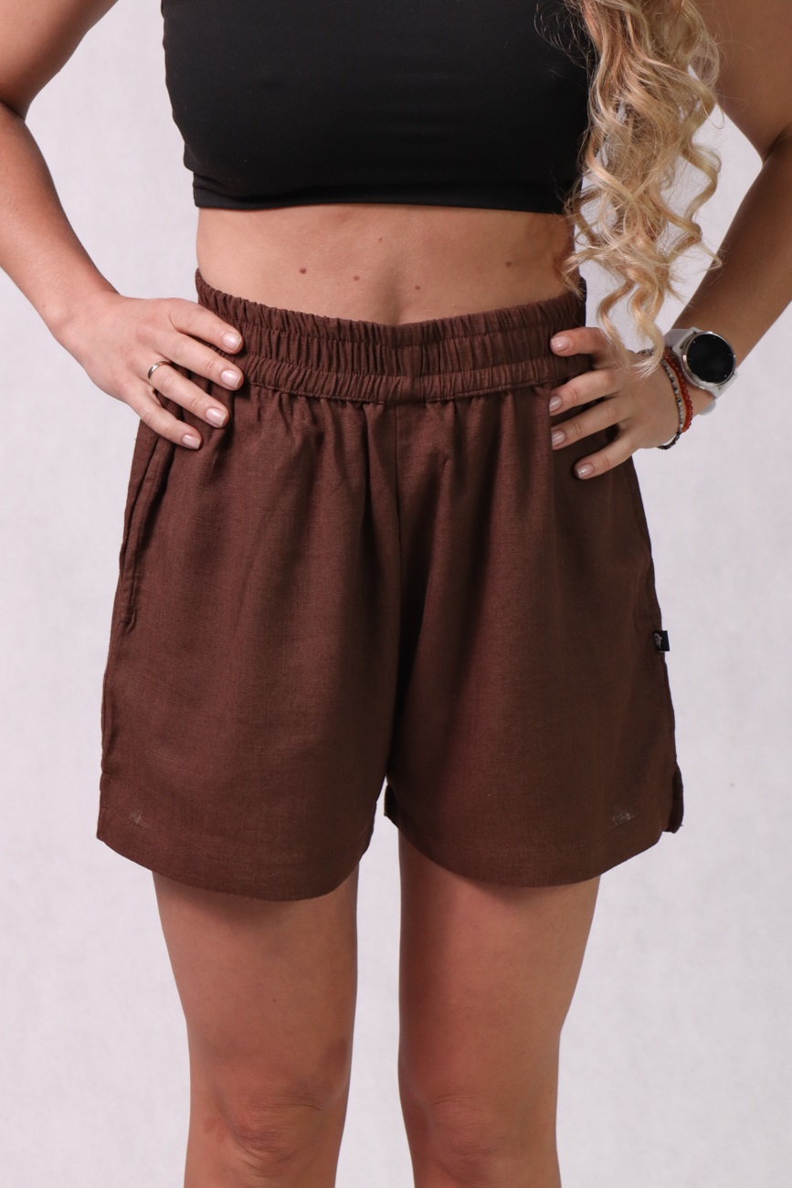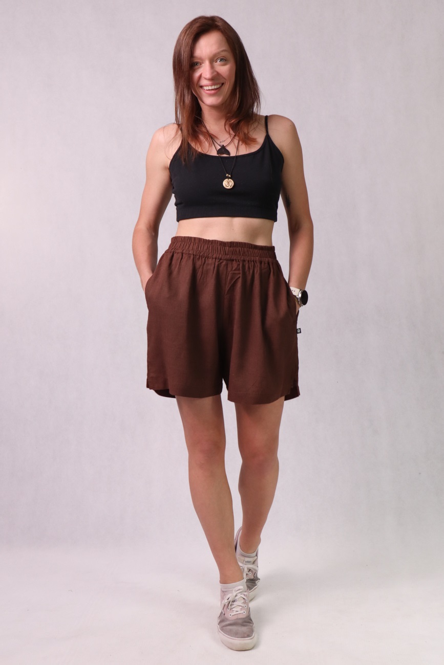 Krótkie spodenki damskie z bawełny, lnu i wiskozy, brązowe