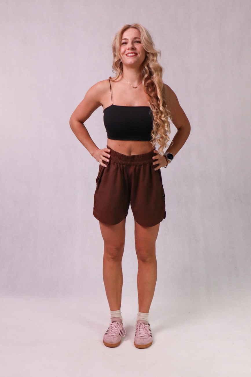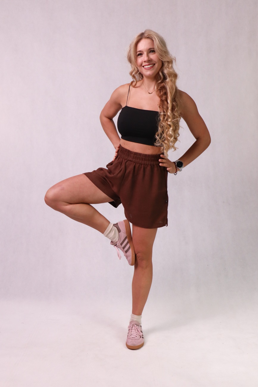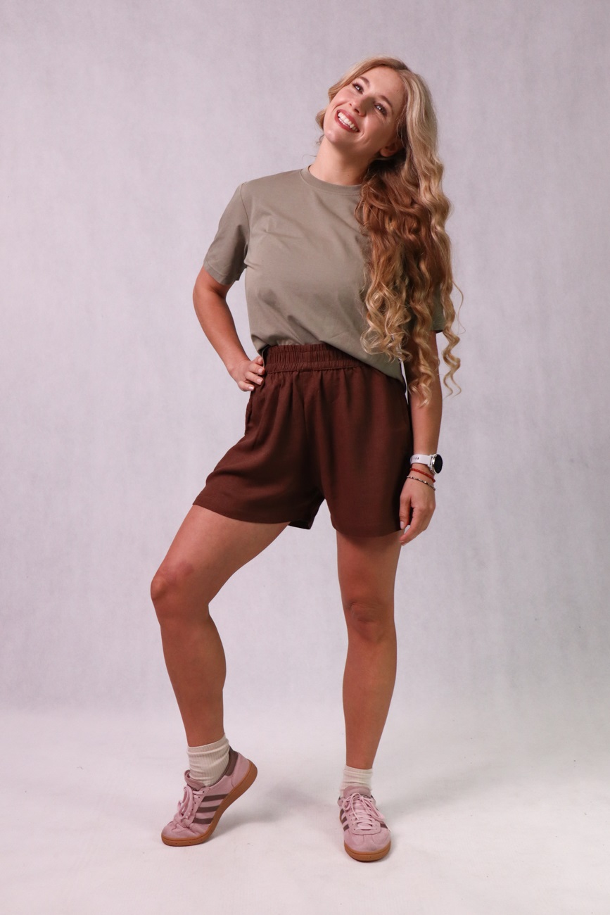 Krótkie spodenki damskie z bawełny, lnu i wiskozy, brązowe