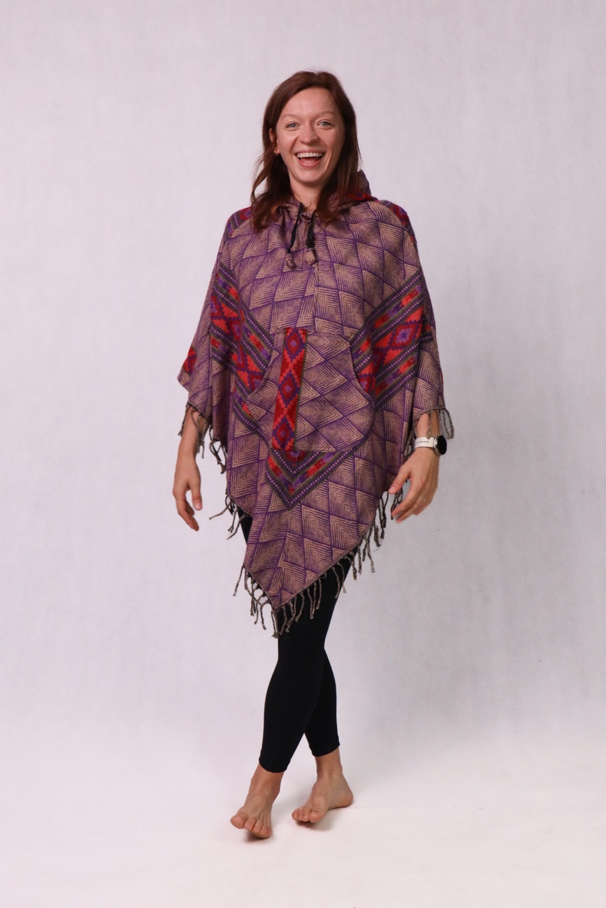 Orientalne ponczo prosto z Nepalu. Ręcznie wykonane przez lokalnych szwaczy w Kathmandu. Zrobione z miękkiego materiału, jest lekkie, ciepłe i przyjemne w dotyku, idealne na chłodne wieczory.